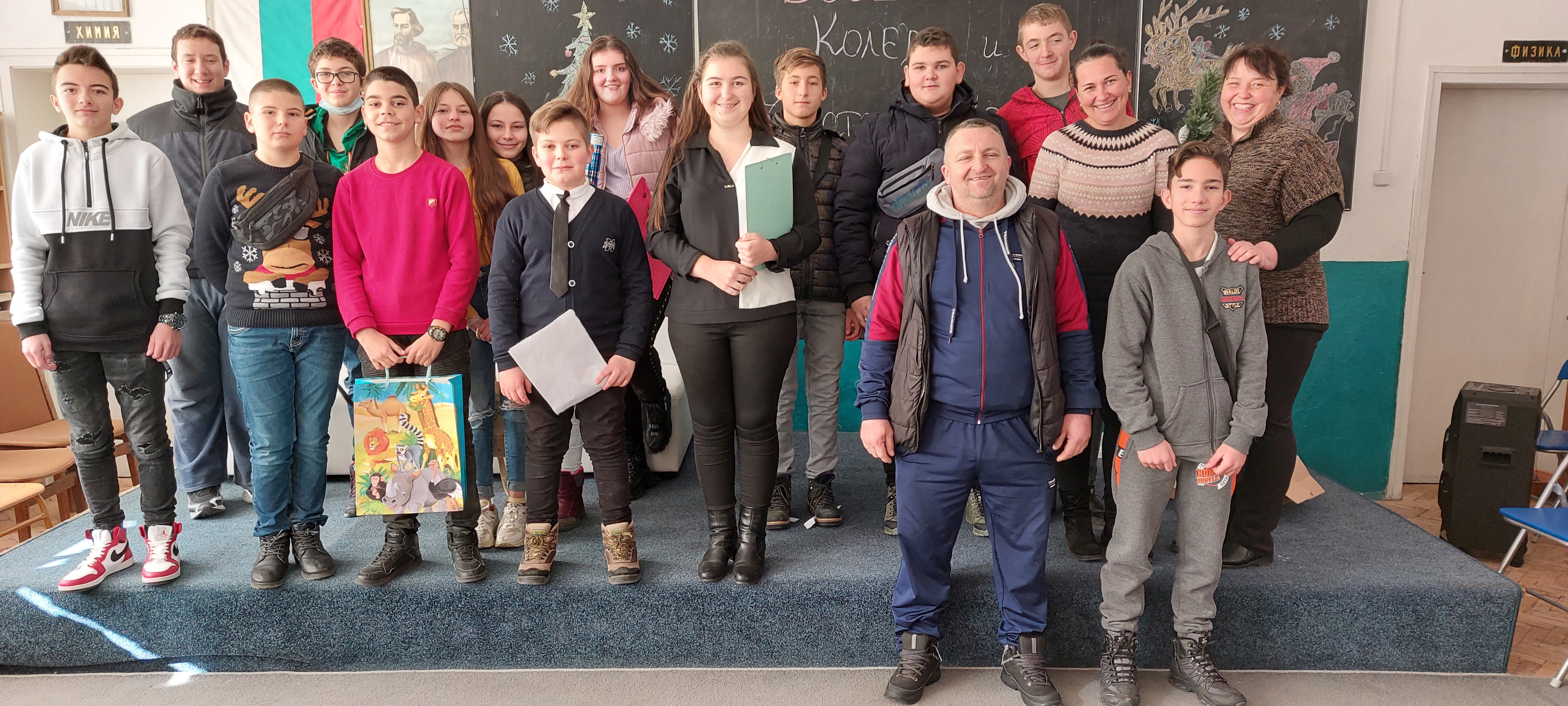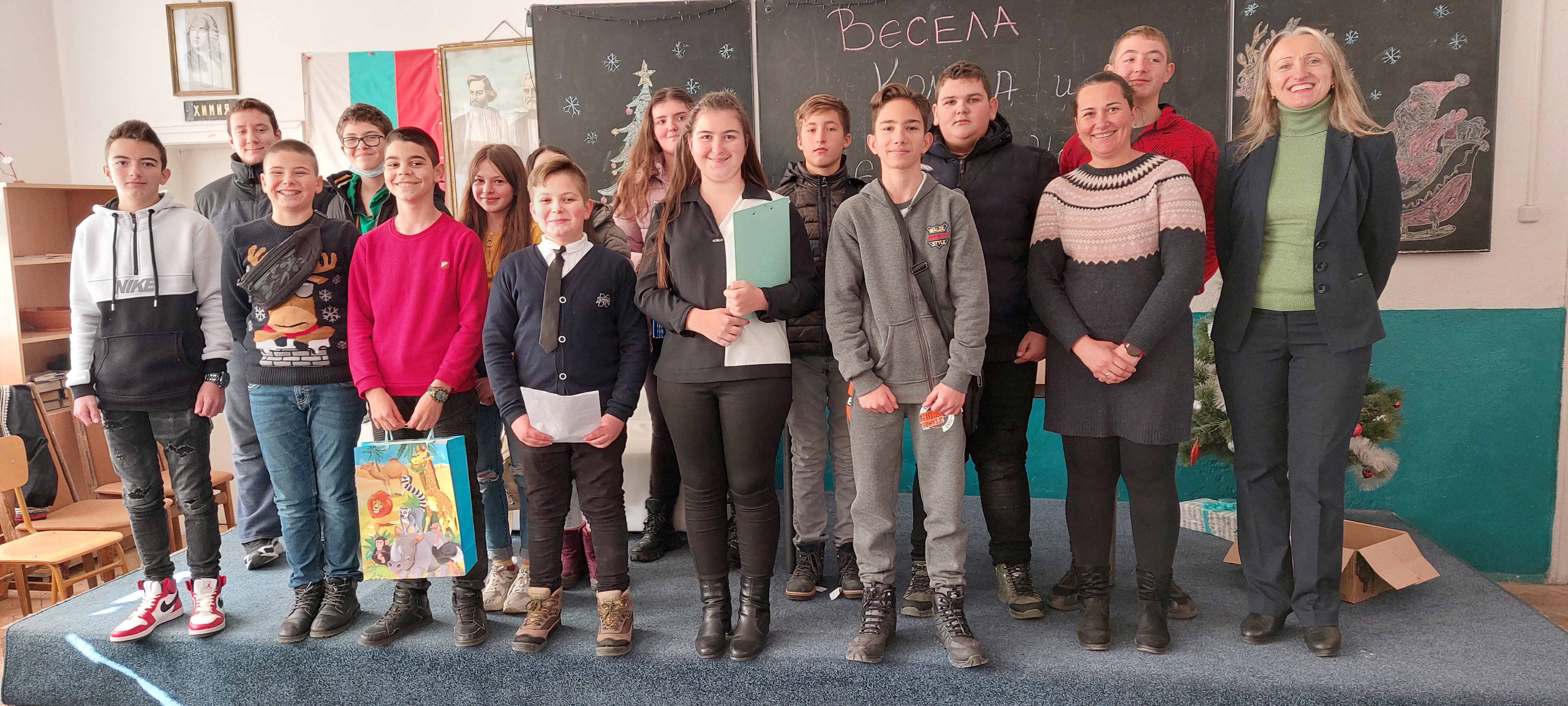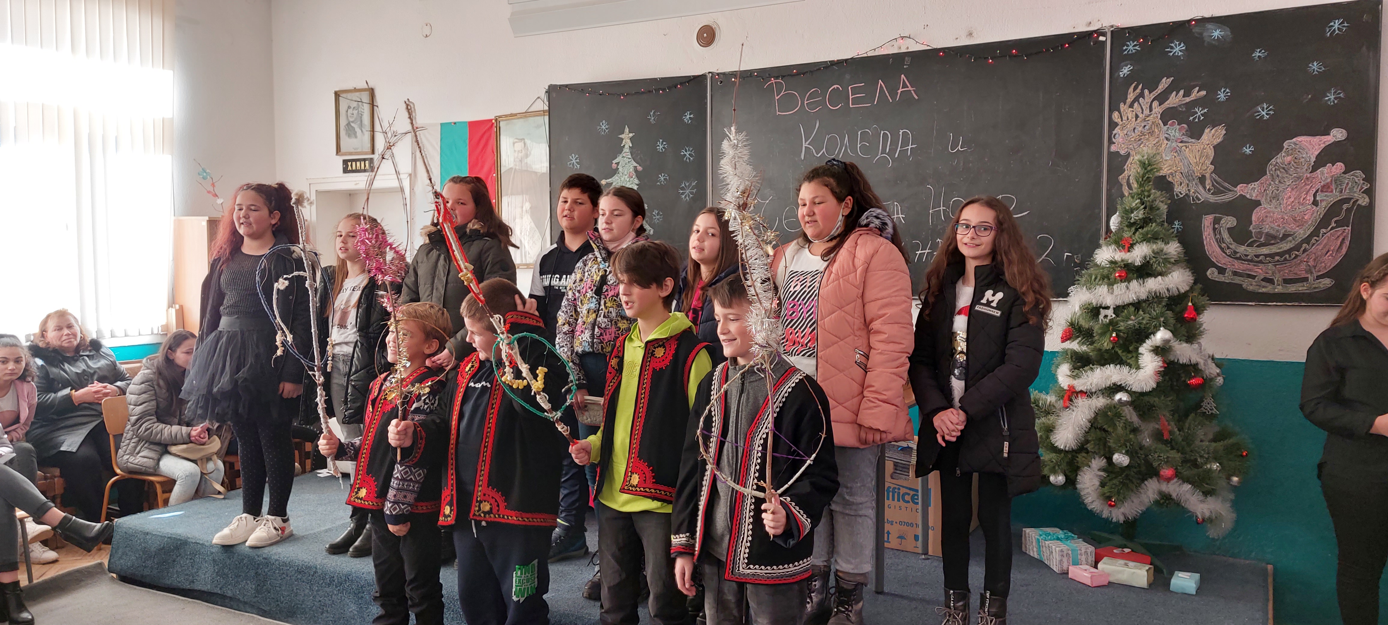 Учениците от клуб „Аз съм журналист“ подготвиха сценария, седми клас организираха томбола, пети клас представиха как се празнува Коледа по света и обичаят коледуване, а шести клас поздравиха с коледна песен.