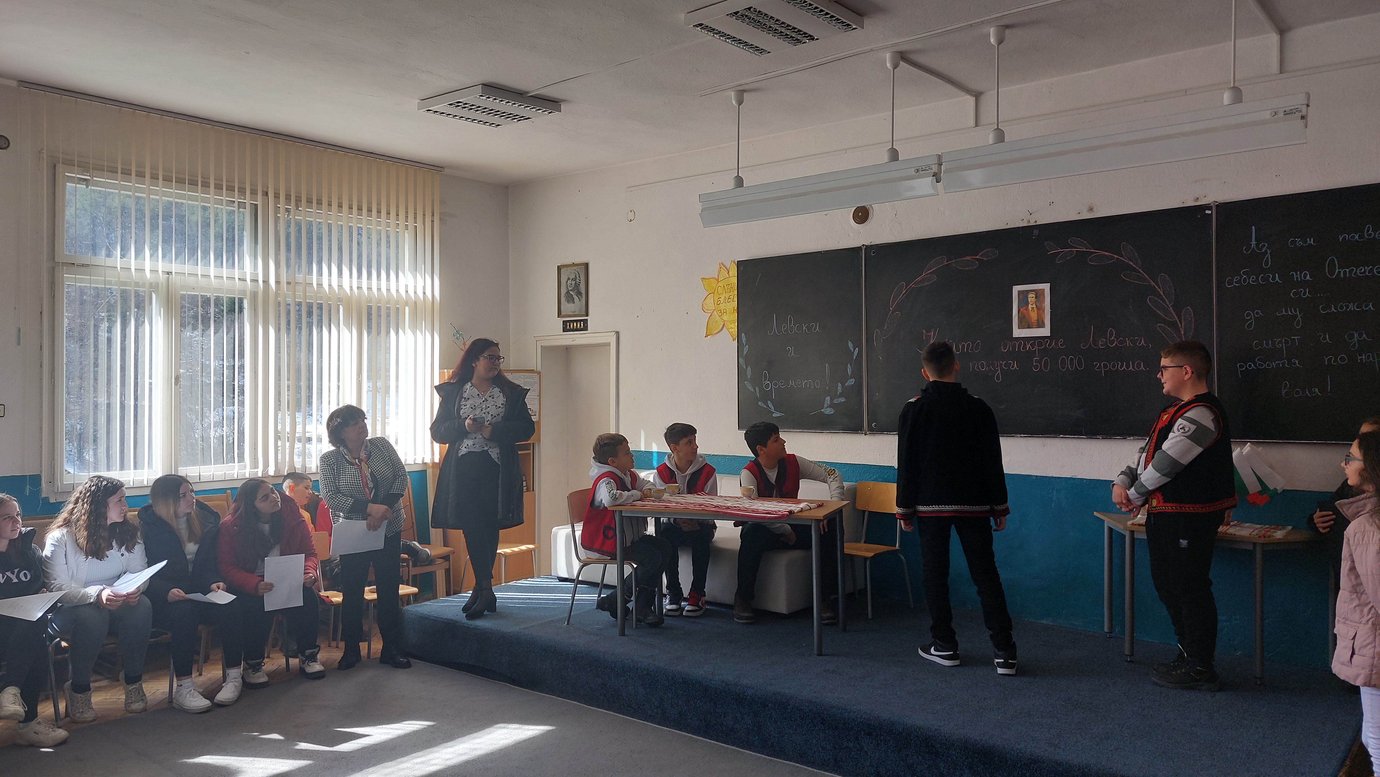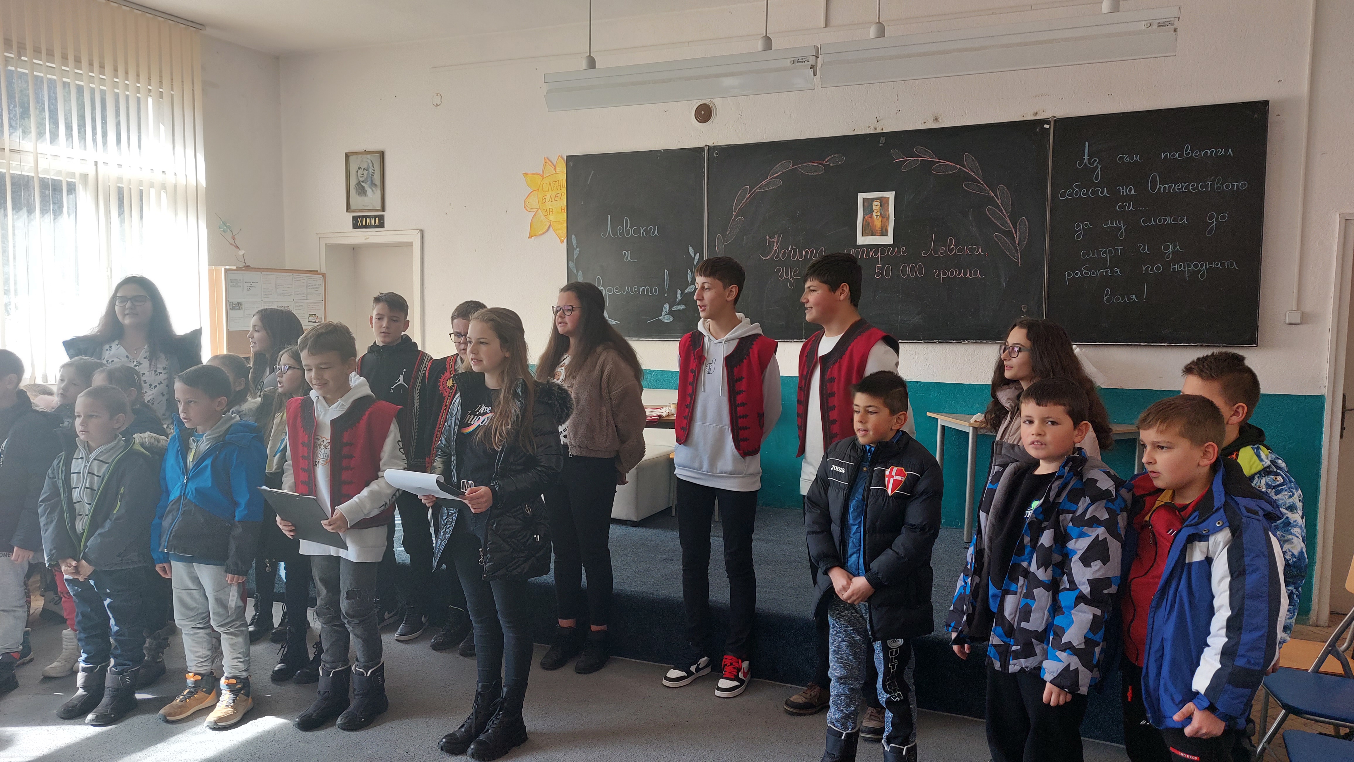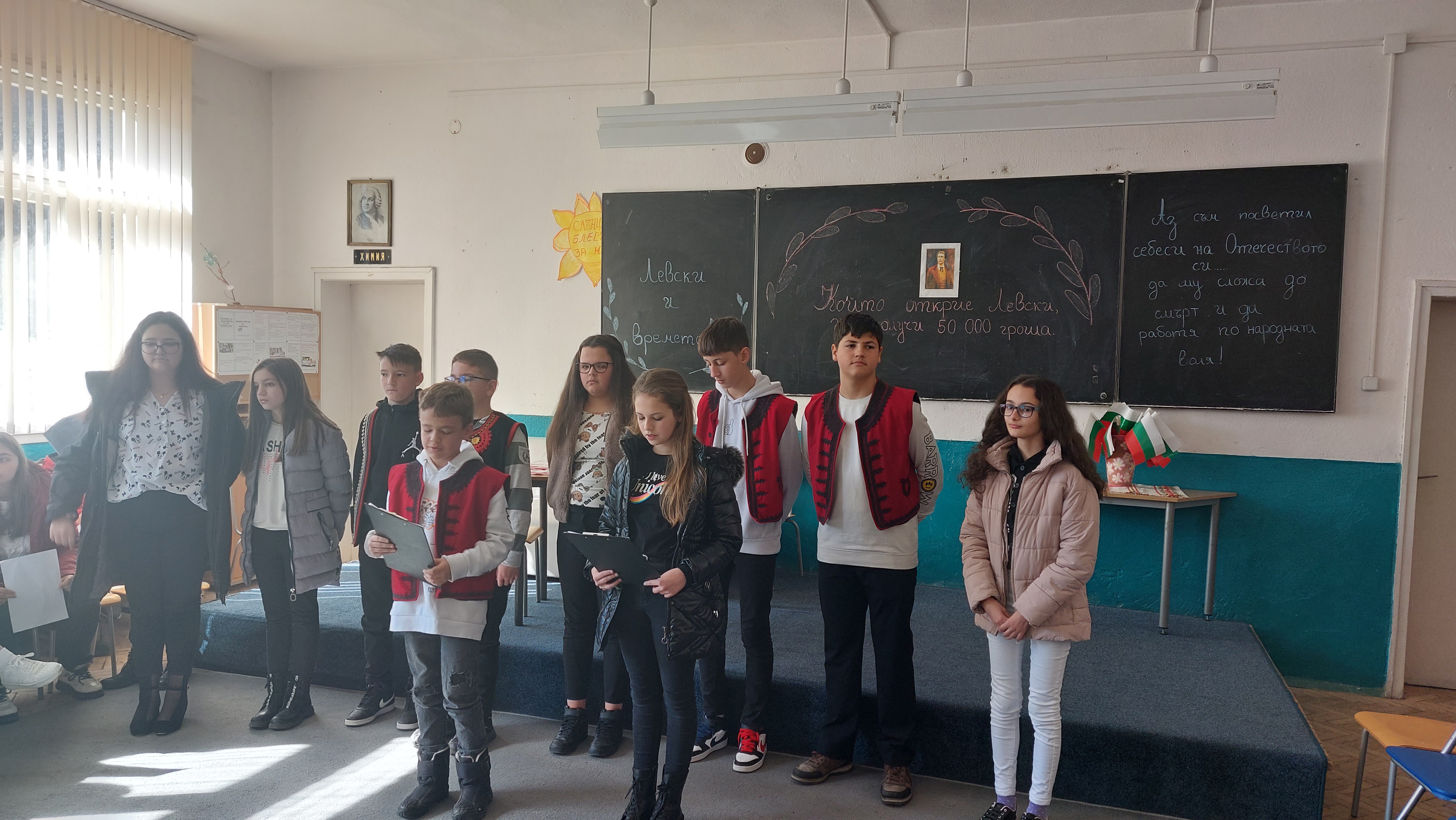 Учениците почетоха паметта на Апостола. Шести клас рецитираха стихотворения, посветени на Левски. Със сценка припомниха моменти от героичния му път, а седми и втори клас се включиха като възпяха с песни делото на националния ни герой!