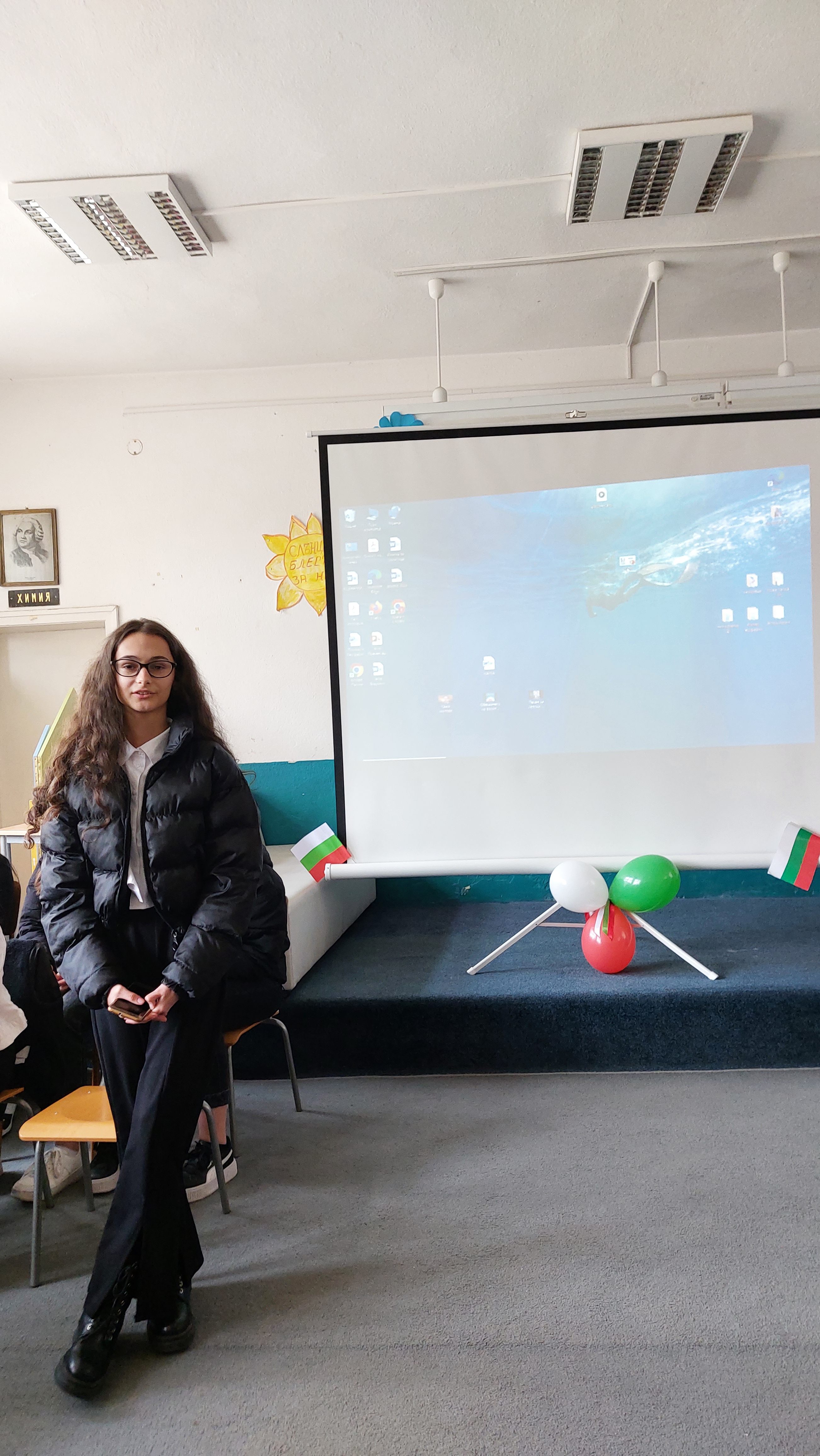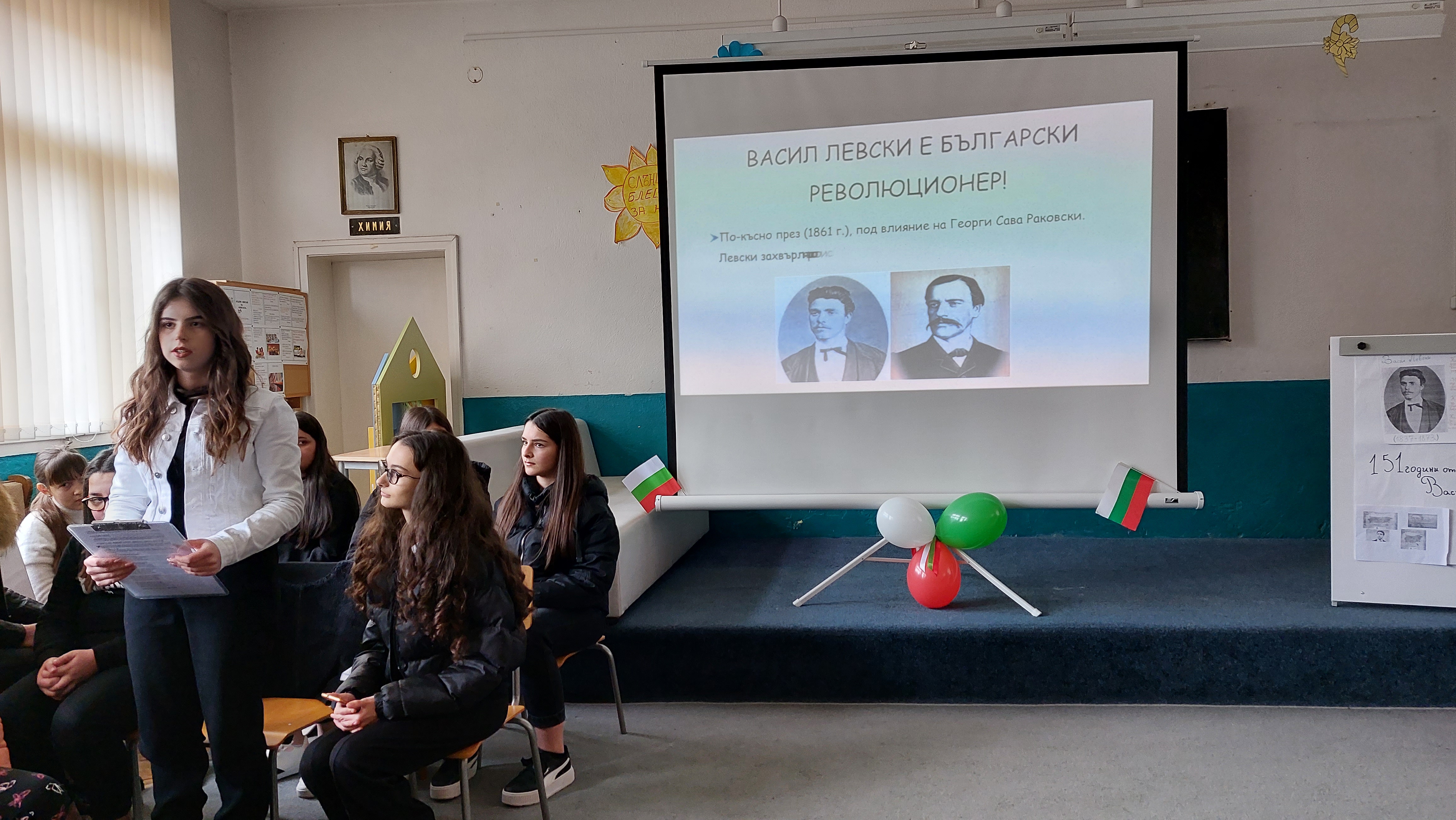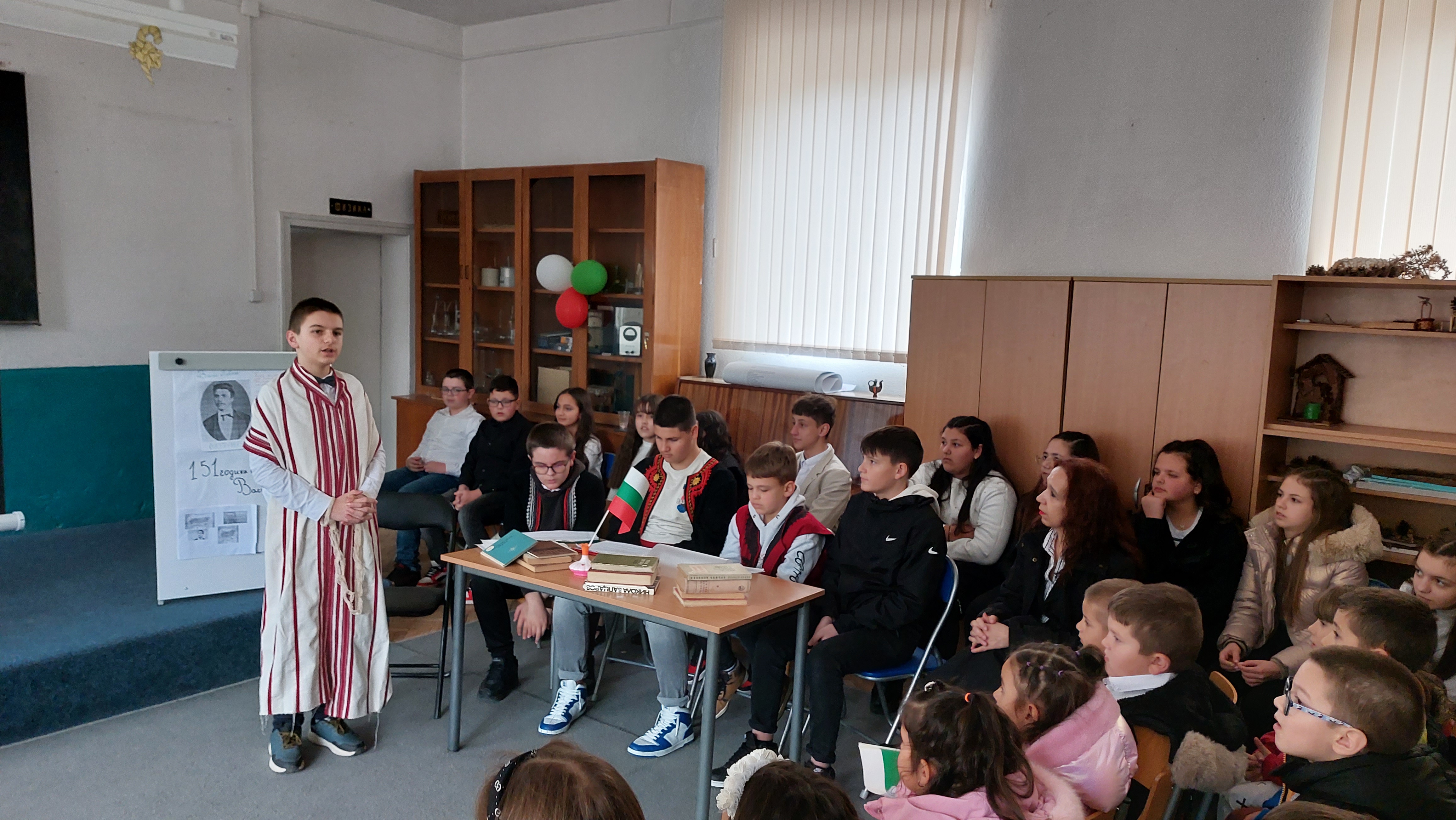 Адриана Борназова от седми клас изпълни своето авторско стихотворение за Левски, което получи и награда от конкурса в РБ „Николай Вранчев“-град Смолян.