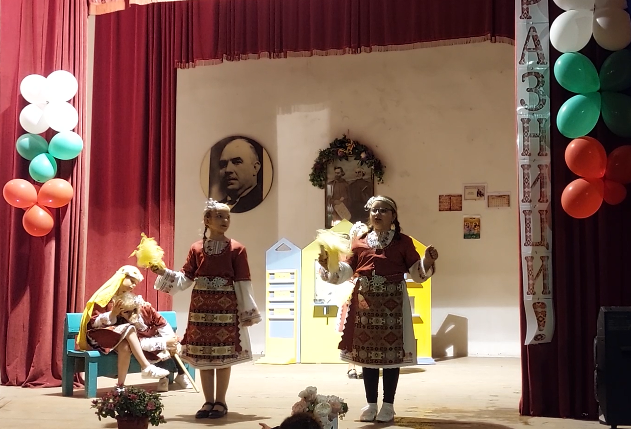 Учениците от клуб „Традиции и обичаи в моя роден край” с ръководител Илияна Монева представиха драматизацията “Родопска сватба” по мотиви на приказката за мързеливата мома.