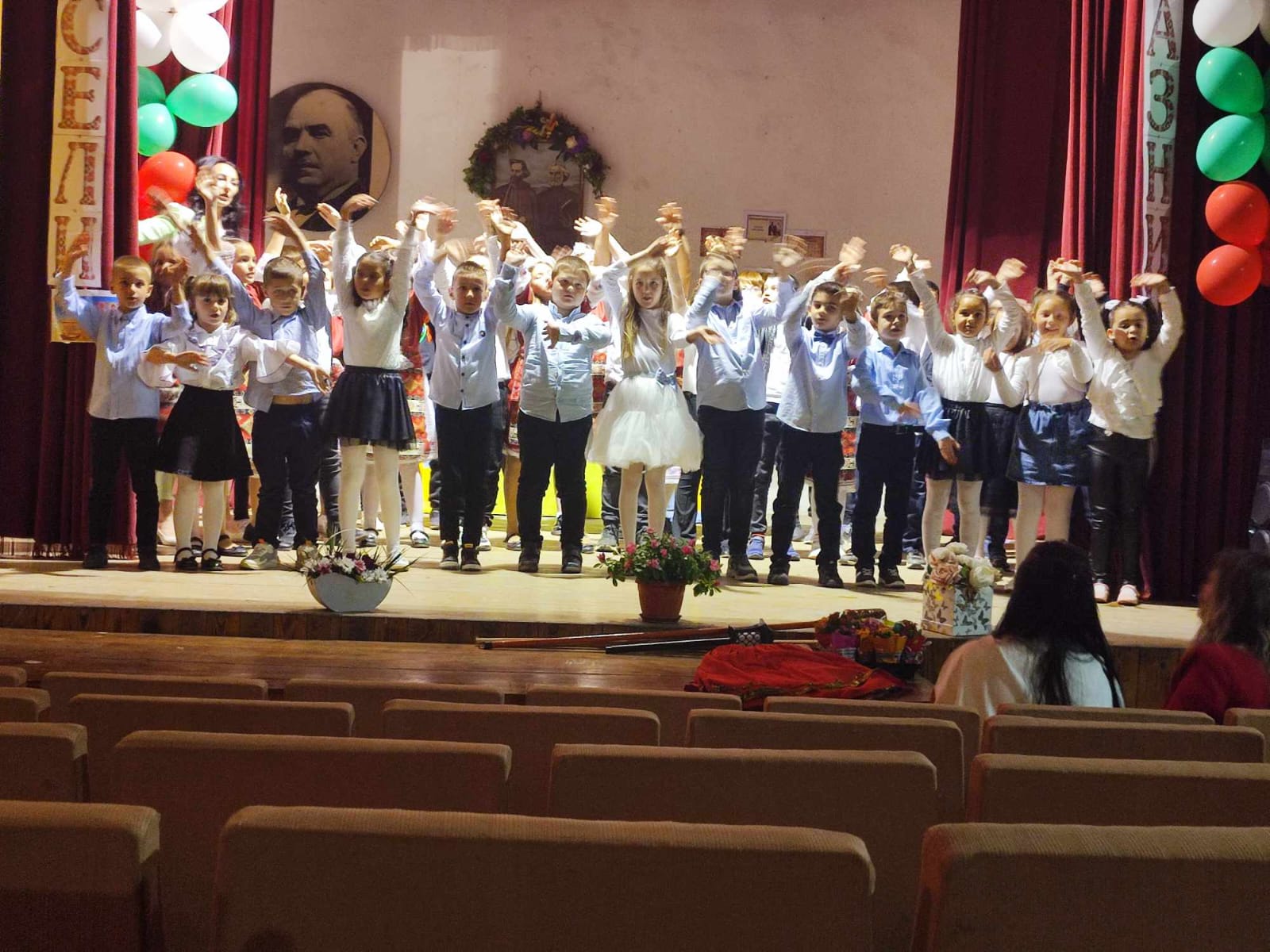 Със стихове и училищни песни, както и песента „Върви, народе възродени“ по стихове от Стоян Михайловски и музика на Панайот Пипков-известният и още като „Химн на св. св. Кирил и Методий“, поздравиха учениците от първи до четвърти клас.