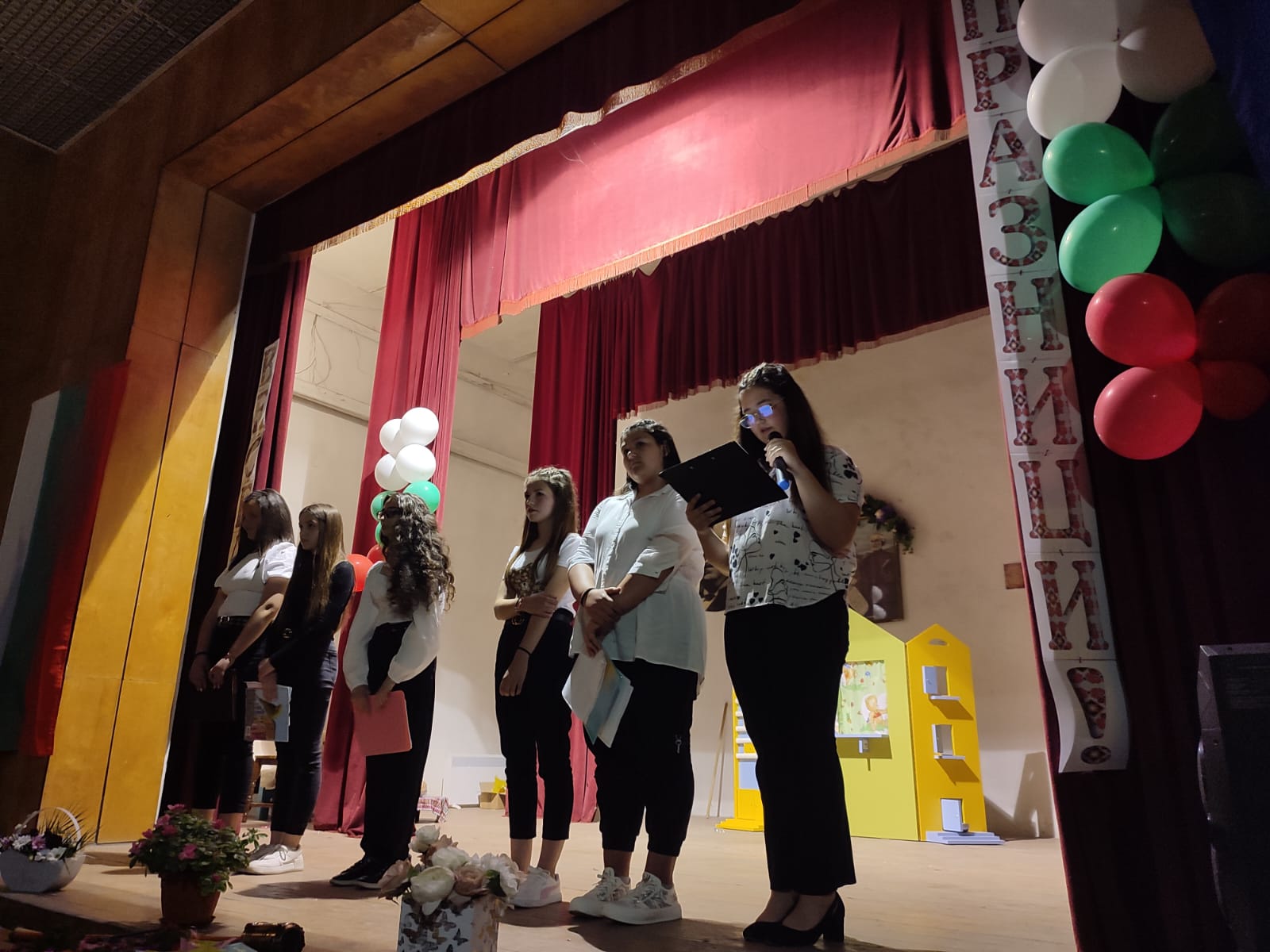 С награждаване на най-изявените ученици и учители от госпожа Димитрова-директор на училището и факелно шествие завършихме празника!